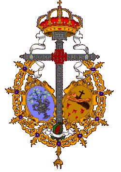 • Estandarte: Bacalá en terciopelo de Lyon morado con el Escudo de la Hermandad en el centro bordado por las R.R.M.M Dominicas de Jaén bajo diseño de A.J. Dubé de Luque, sobre vara de plata cincelada que es timbrada por un templete albergando una Custodia y una Cruz del taller de orfebres de Manuel de los Ríos
