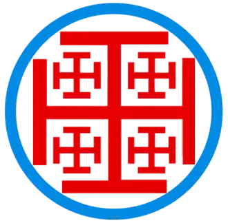 Escudo de la hermandad, que consiste en una Cruz de Jerusalén | ||