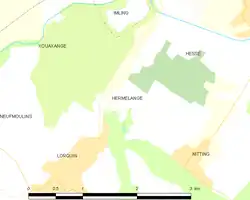 - ↑ INSEE, Datos de población para el año 2012 de Hermelange (en francés).