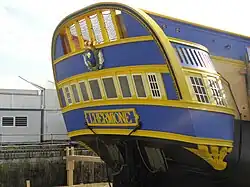 34 cañones no funcionales. Cubierta principal: 8 cañones de 6 libras. Cubierta de batería: 26 cañones de 12 libras | |