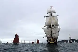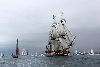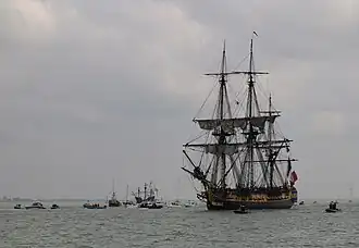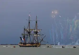 La Hermione es una réplica del navío de guerra francés homónimo que estuvo en servicio entre 1779 y 1793. Su reconstrucción comenzó en 1997 en el arsenal de Rochefort y fue botada[1] el 7 de septiembre de 2014.