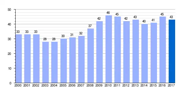 | Gráfica de evolución demográfica de Hermua[7] entre 2000 y 2017 |