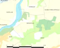 - Situación de Herqueville en un mapa de Francia y de comunas limítrofes Archivado el 14 de febrero de 2009 en Wayback Machine. (en francés)