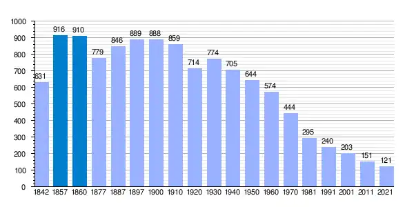 Población de derecho según los censos de población del INE Población de hecho según los censos de población del INEEn estos censos se denominaba Herrín: 1842 y 1857[5] |