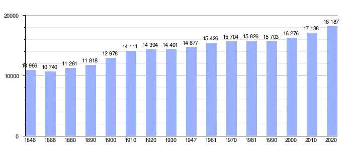 Todos los datos históricos relativos al actual municipio, el siguiente gráfico refleja su evolución demográfica, incluyendo municipios después de efectuada la fusión el 1 de enero de 1977.