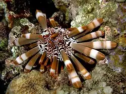 - ↑ de Beer, M. (1990) Distribution patterns of regular sea urchins (Echinodermata:Echinoidea) across the Spermonde Shelf, SW Sulawesi (Indonesia). Echinoderm research. Balkema, Rotterdam.