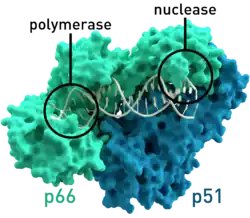 - Transcriptasa inversa. La transcriptasa inversa del virus de la inmunodeficiencia humana es una enzima que cataliza la síntesis de ADN a partir del ARN genómico viral y está formada por dos subunidades diferentes que reciben el nombre de p66 y p51.[3]