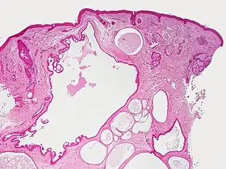El hidrocistoma (también conocido como cistoadenoma,[1] quiste de las glándulas de Moll,[1] o quiste sudorífero[1]) es un adenoma de las glándulas sudoríparas.[2] : 787