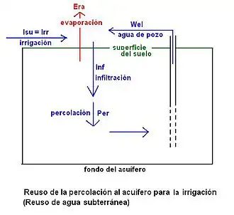 | Iaq | Flujo de agua subterránea horizontal entrando en el acuífero | |