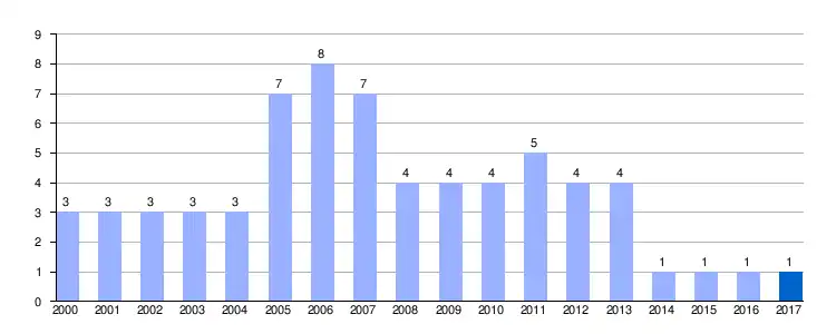 | Gráfica de evolución demográfica de Hierro entre 2000 y 2017 |