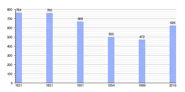| Gráfica de evolución demográfica de Hiers-Brouage entre 1831 y 2016 |