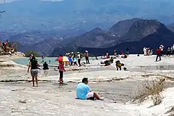 Hierve el Agua es un sistema de cascadas petrificadas, formadas por carbonato de calcio. Las cascadas son de origen natural y se formaron hace miles de años por el escurrimiento de agua con alto contenido de minerales. El lugar se ubica a unos 70 km de la ciudad de Oaxaca, en la población de San Isidro Roaguía, municipio de San Lorenzo Albarradas, estado de Oaxaca, en México, en las cercanías de la zona arqueológica de Mitla y a 630 km de la Ciudad de México. Aún no cuenta con alguna categoría de protección, como área natural protegida o reserva de la biosfera.