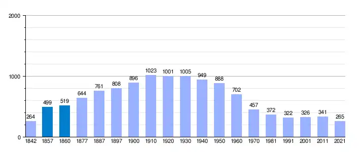 | Gráfica de evolución demográfica de Higuera de las Dueñas[7] entre 1842 y 2021 |