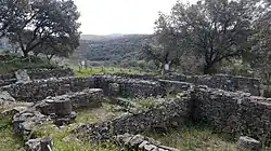 En el centro del poblado se sitúa un pequeño santuario abierto a la calle central. Se trata de una estancia de piedra rodeada de un banco corrido adosado a la pared, con una mesa de piedra que haría las funciones de altar. Con motivo de las guerras de conquista romanas, el poblado sufrió una destrucción violenta que provocó su abandono temporal.