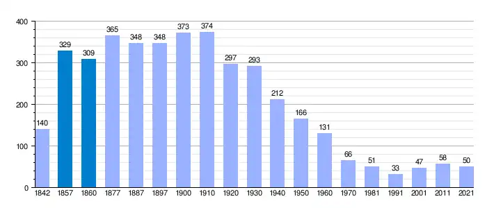 | Gráfica de evolución demográfica de Higueras[2] entre 1842 y 2021 |