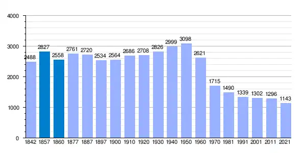| Gráfica de evolución demográfica de Higueruela[1] entre 1842 y 2021 |