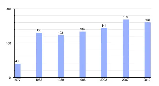 | Gráfica de evolución demográfica de Hikueru entre 1977 y 2012 |