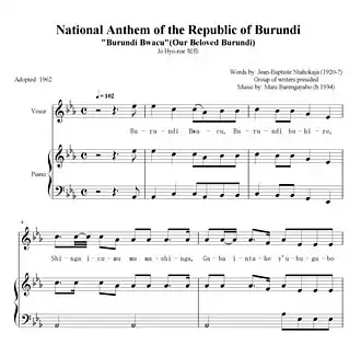 Burundi bwacu es el himno nacional de Burundi. Adoptado como himno nacional en 1962 bajo la presidencia de Jean-Baptiste Ntahokaja. Fue escrito por un grupo de compositores y arreglado por Marc Barengayabo.