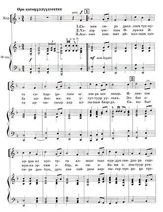 ![]() Partitura del Himno Nacional de la República de Sajá | ||