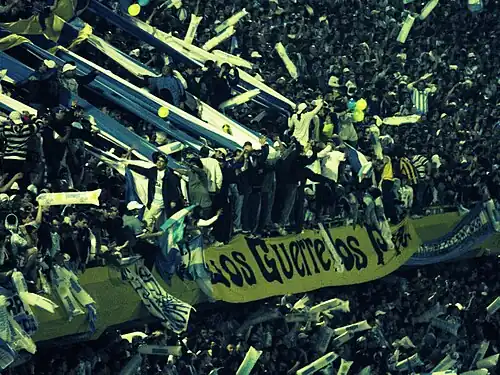 ![]() Los Guerreros desplegando una bandera gigante | ||