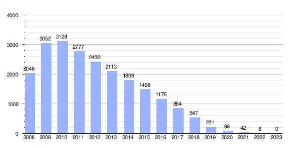 Deuda viva del Ayuntamiento de Hinojosa del Duque en miles de euros según datos del Ministerio de Hacienda.[10] |