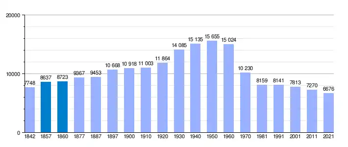 | Gráfica de evolución demográfica de Hinojosa del Duque[8] entre 1842 y 2021 |