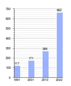 Para el censo 2022 la población se incrementó fuertemente y arrojó 662 habitantes. Además, se registraron 234 viviendas.[3] Además, el censo dio a conocer datos de su composición poblacional (338 hombres 324 mujeres), densidad y área urbana.[4]