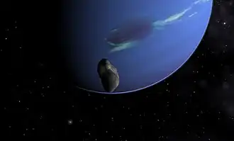 - ↑ Agnor, Craig B.; Hamilton, Douglas P. (Mayo de 2006). «Neptune's capture of its moon Triton in a binary–planet gravitational encounter». Nature 441 (7090): 192-194. Bibcode:2006Natur.441..192A. PMID 16688170. S2CID 4420518. doi:10.1038/nature04792.