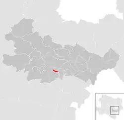 Se encuentra ubicada al este del estado, a poca distancia al sur de Viena y al oeste de la frontera con el estado de Burgenland.[2]