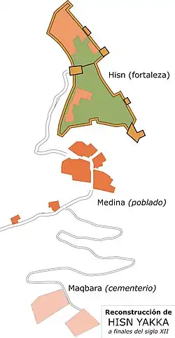 - ↑ a b Región de Murcia Digital, ed. (2007). «El origen de Hisn Yakka». Consultado el 19 de octubre de 2009.