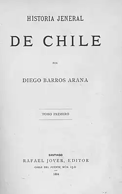 Publicada en 16 gruesos volúmenes entre 1884 y 1902, la Historia General de Chile (originalmente Historia Jeneral de Chile),[n 1] del historiador chileno Diego Barros Arana, es considerada la máxima obra historiográfica chilena del siglo XIX.