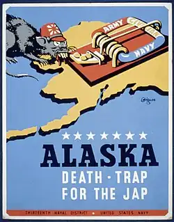 En 1942, dos islas Aleutianas exteriores—Attu y Kiska—fueron ocupadas por los japoneses y su recuperación por parte de los Estados Unidos las convirtieron en cuestión de orgullo nacional. La construcción de bases militares contribuyó al crecimiento de la población en algunas ciudades de Alaska.