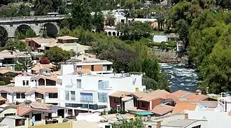 En el año 2000, la Unesco reconoció las 332 hectáreas[14] del casco histórico de Arequipa como «Patrimonio Cultural de la Humanidad».[15] El patrimonio histórico y monumental que alberga y sus espacios escénicos y culturales la convierten en una ciudad receptora de turismo nacional e internacional. En dicha zona histórica destaca la arquitectura religiosa virreinal y republicana producto de mezcla de características españolas y autóctonas.[16] Estas características dieron lugar a una escuela estilística arquitectónica propia denominada «Escuela Arequipeña»[17] cuya influencia irradió hasta Potosí.[18][19]