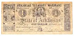 En 1836, Arkansas iba a ser el recipiente de fondos de la Ley de Depósito y Distribución.[76] Una fuente importante de dinero para el Banco Estatal, el programa se enfrentó a una recesión que impidió su eficacia. El tesorero del estado William Woodruff tuvo problemas cobrando los primeras dos instalaciones debido a un pánico bancario.[77][78] Los problemas a que se enfrentó Woodruff pasó a llamarse el Pánico de 1837, una recesión para que se necesitaron años para resolver. Mientras Woodruff intentó recaudar los fundos de la Ley de Depósito y Distribución, se abrieron bancos estatales en varias ciudades, que estaban prestando dinero basado en las notas dadas a Woodruff de varios otros estados.[79] Además, no se vendieron tantos bonos como esperados, dejando las instituciones sin la mayoría de su dinero anticipado.[80] Los dos bancos fallarían dentro de una década, y los bonos que habían emitidos se volvieron involucrados con negocios jurídicamente dudosos. Eventualmente los bonos llegaron a las manos del banquero londinense James Holford, y pasaron a ser llamados los "Bonos Holford".[81] La cuestión de si los bonos eran una deuda estatal legítima y si serían pagados sería un asunto político en el estado por todo los 1800.[82]