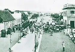 La construcción del ferrocarril entre Sabanilla y Barranquilla, cuyo trabajo comenzó en 1869,[56] le dio a Barranquilla un nuevo ímpetu económico, lo que le permitió convertirse rápidamente en el puerto más importante de Colombia.[57] Así, entre 1870 y 1874, las importaciones aumentaron de US$ 392 135 a US$ 8 350 000 y las exportaciones de US$ 2 378 854 a US$ 8 764 786, en detrimento de otros puertos como Santa Marta.[57] En la década de 1870, grupos de profesionales y colonias de extranjeros se reunían en clubes sociales en Barranquilla. A fines del siglo XIX, había cuatro: Club Barranquilla, Internacional, Louvre y San Carlos. Estos clubes sociales promovían actividades sociales y culturales, tanto para sus miembros como para la población de la ciudad.[58]