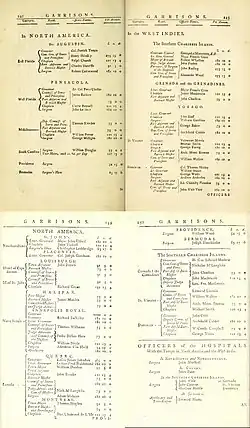 - ↑ «STAFF of the ARMY in the Provinces of Nova-Scotia, New-Brunswick, and their Dependencies, including the Island of Newfoundland, Cape Breton, Prince Edward and Bermuda». The Quebec Almanack and British American Royal Kalendar For The Year 1828 (Quebec: Neilson and Cowan, No. 3 Mountain Street). 1812.