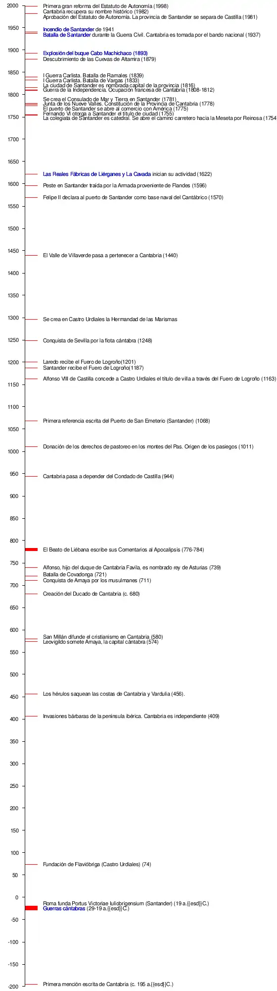 La historia de Cantabria incluye los primeros asentamientos humanos, con evidencias como las pinturas de la cueva de Altamira, y llega hasta nuestros días; pasando por ser pieza fundamental para España en diversas ocasiones, como por ejemplo durante la Reconquista o en las relaciones comerciales con el Nuevo Mundo gracias al puerto de Santander.