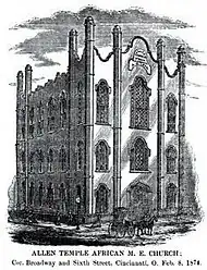 La Iglesia Episcopal Metodista Africana Allen Temple fue fundada en 1824 como la primera iglesia negra en Ohio. Fue una parada importante en el Ferrocarril Subterráneo durante muchos años. Sembró muchas otras congregaciones en la ciudad, en todo el estado y en todo el Medio Oeste.