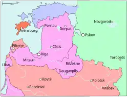 - ↑ a b Brüggemann, Karsten (2022). Geschichte der baltischen Länder. Reclam. p. 63. ISBN 9788470398131.