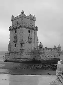 Para organizar todo el comercio privado y recaudar impuestos, en la capital del siglo XVI se crean las casas portuguesas de comercio: la Casa de la Mina, la Casa de Arguim, la Casa de los Esclavos, la Casa de Flandes (Países Bajos) y la célebre Casa de la India. Los grandes beneficios son usados para la construcción de otros edificios: de este siglo son el monasterio de los Jerónimos de Belém y la torre de Belém, en un nuevo estilo, el manuelino (que evoca el comercio de ultramar). Se construye en esta época el palacio de Ribeira, que fue destruido por el terremoto de Lisboa de 1755. El impulso a la pavimentación de las calles con formas geométricas y diseños formados por cubos de caliza blanca y negra fue un lujo de la época, que otras ciudades de Europa no se podían permitir. La ciudad se extendía llegando a poseer doscientos mil habitantes. En esta época se construyó el Bairro Alto, que inicialmente se conocía por Vila Nova dos Andrades en honor a los ricos burgueses gallegos que allí se establecieron. Pronto se convertirá en el barrio más rico de la ciudad. En 1552 se inauguró la Feira da Ladra que aún funciona en el mismo local.