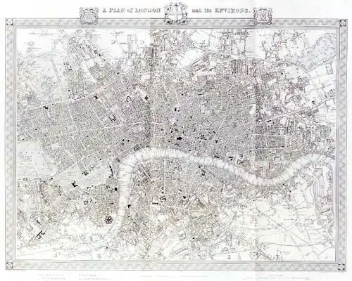 La zona urbanizada siguió creciendo rápidamente y se extendió por Islington, Paddington, Belgravia, Holborn, Finsbury, Shoreditch, Southwark y Lambeth. Hacia mediados de siglo, el anticuado sistema de gobierno local de Londres, formado por antiguas parroquias y sacristías, tuvo dificultades para hacer frente al rápido crecimiento de la población. En 1855 se creó la Junta Metropolitana de Obras (Metropolitan Board of Works, MBW) con el fin de dotar a Londres de infraestructuras adecuadas para hacer frente a su crecimiento. Una de sus primeras tareas fue abordar los problemas de saneamiento de Londres. En aquella época, las aguas residuales se vertían directamente al río Támesis. Esto culminó en el Gran Hedor de 1858.[46]