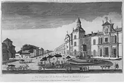 Una institución típicamente ilustrada, la Real Sociedad Económica de Amigos del País, se funda en su versión madrileña en 1775 con el apelativo Matritense, a iniciativa de Campomanes. Su sede está en la Torre de los Lujanes, frente al antiguo ayuntamiento.[30] Del reinado de Carlos III datan la basílica de San Francisco el Grande (1761-1770); la Casa de Correos (1766-1768), la Casa Real de la Aduana (1769), la Puerta de Alcalá (1769-1778) o el Palacio de Buenavista (1777).