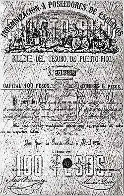 Tras la ratificación del Tratado de París (1898), Puerto Rico quedó bajo control militar de Estados Unidos. Esta situación trajo consigo cambios significativos: el nombre de la isla fue cambiado a Porto Rico (sería cambiado de nuevo a Puerto Rico en 1932) y la moneda fue cambiada del peso puertorriqueño al dólar estadounidense.[12]