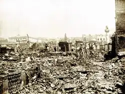 En 1913, en la ciudad todavía residían unos 46.000 musulmanes y 61.000 judíos, superando ampliamente a los 40.000 cristianos ortodoxos. Sin embargo, los activistas griegos tenían la intención de hacerles sentir que no eran bien recibidos.[15] Profanaron cementerios y saquearon comercios. En agosto de 1917, un gran incendio destruyó extensas zonas de la ciudad, y arrasó los barrios judíos y musulmanes. El fuego, y la cada vez mayor emigración de judíos y musulmanes, brindó a las autoridades griegas la oportunidad de reconstruir Salónica como una ciudad griega poblada por griegos. El objetivo era que Salónica volviese a ser la ciudad cristiana de san Demetrio. Salónica renacería como Tesalónica.