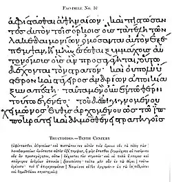 ![]() Imagen de Historia de la guerra del Peloponeso en un manuscrito del siglo X. | ||
