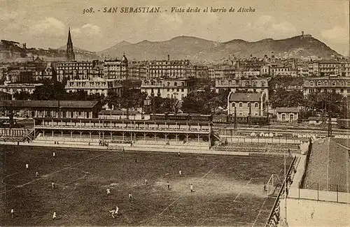 En agosto de 1904 se fundó en San Sebastián el San Sebastián Recreation Club, un club polideportivo que incluía entre sus múltiples secciones deportivas, una dedicada al foot-ball. Este fue el primer club de fútbol formalmente establecido en la ciudad y también el primer club guipuzcoano que participó en un campeonato nacional, al presentarse a la Copa del Rey de Fútbol 1905. Aquel equipo jugaba con unas llamativas camisetas de rayas amarillas y verdes, que un siglo más tarde recuperaría la Real Sociedad como segundo uniforme en homenaje a su directo antecesor durante las temporadas 2007-08 y 2008-09. Este club fue el que inauguró en 1906 el campo de fútbol de Ondarreta, primer campo de fútbol que tuvo la ciudad, situado actualmente en el barrio de El Antiguo, cerca de la playa de Ondarreta, que le dio nombre.
