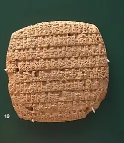 La base de la dieta en la antigua Mesopotamia eran las verduras, hortalizas y legumbres, así como la fruta, especialmente cebollas, ajos, nabos, pepinos, rábanos, lechuga y cogollos de palmito.[23] También cultivaban la calabaza y la berenjena, procedentes de la India.[24] El desayuno era generalmente un «puré», compuesto de harina, leche ácida, aceite y jarabe, por lo general acompañado de bollos de pan de cebada. La carne era más frecuente en la dieta de las clases altas, generalmente de buey y carnero, así como el pescado y las aves. Hacia comienzos del ii milenio a. C. estaba consolidada la crianza de pollos.[23]
