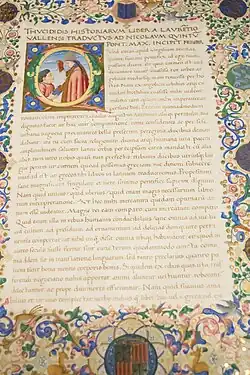 ![]() Imagen de Historia de la guerra del Peloponeso en un manuscrito del siglo X. | ||