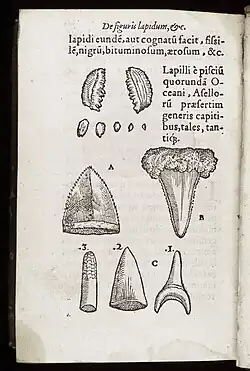 Sin embargo, la mayoría de los europeos del siglo xvi no reconocieron que los fósiles eran los restos de organismos vivos. La etimología de la palabra fósil proviene del latín para desentarrar, desenterrado. En consecuencia, el término se aplica a una amplia variedad de objetos pétreos sin tener en cuenta si podrían tener un origen orgánico. Escritores del siglo xvi como Gesner y Georg Agricola estaban más interesados en la clasificación de este tipo de objetos por sus propiedades físicas y místicas que en la determinación de su origen.[Rud. 4] Además, la filosofía natural del período animó a que se formularan explicaciones alternativas para el origen de los fósiles. Tanto las escuelas aristotélicas y neoplatónicas proporcionaron apoyo a la idea de que los objetos pétreos pueden crecer dentro de la tierra para parecerse a los seres vivos. La filosofía neoplatónica sostuvo que podía haber afinidades entre los objetos vivos y no vivos que podrían causar que unos se parecieran otros. La escuela aristotélica sostuvo que las semillas de organismos vivos podrían introducirse bajo tierra y generar objetos parecidos a esos organismos.[Rud. 5]