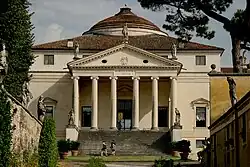 La Villa Capra, también conocida como La Rotonda, fue construida por Andrea Palladio de 1565 a 1569 cerca de Vicenza. Su planta cuadrada altamente simétrica está centrada en una sala circular cubierta por una cúpula, y será muy influyente en los arquitectos georgianos del siglo XVIII en Inglaterra, en los arquitectos en Rusia y los arquitectos en América, entre ellos Thomas Jefferson. Con el uso de la cúpula aplicada por primera vez a un edificio residencial, Palladio enfrenta el tema de la planta central, reservada hasta ese momento a la arquitectura religiosa. Aunque han existido otros ejemplos de esta combinación,[15] la Rotonda permanece como ejemplo único de la arquitectura de todos los tiempos, un modelo ideal reconocido. Las dos iglesias con cúpula de Palladio en Venecia son Il Redentore (1577-1592) y San Giorgio Maggiore (1565-1610), la primera construida en acción de gracias por el final de un brote de peste en la ciudad.[Nut. 5]
